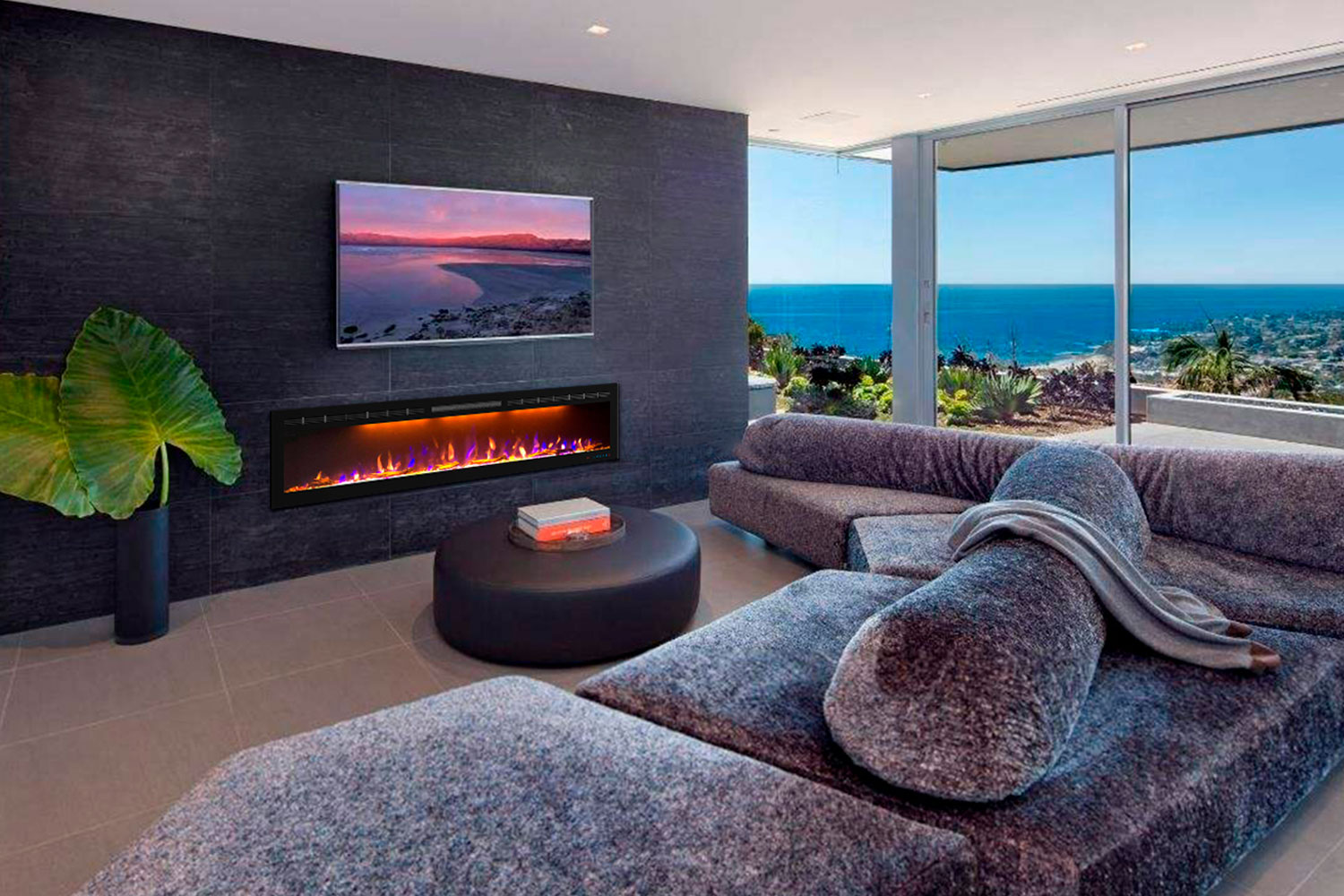 Управление настройками каминов может осуществлять с сенсорной панели, расположенной на фронтальной поверхности экрана, или пульта ДУ, который поставляется в комплекте.