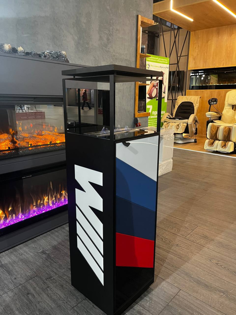 Уникальный биокамин – Firezo M Performance отражает стиль и дизайн немецкого автомобиля. Металлический каркас и стенки из дерева гармонично сочетаются с накладками из эко кожи и алькантары. Также внутри камина мы сделали мини бар – это точно удивит!