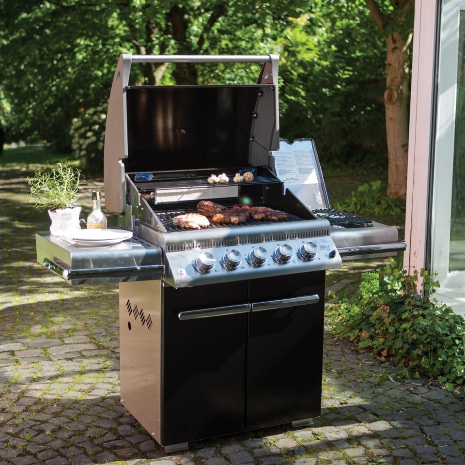 3. Napoleon Prestige P-500: 6 горелок; основная поверхность, дополнительная решетка и боковая ИК-горелка; датчик температуры; горелка для вертела; всепогодные колеса с фиксацией; мощность 22,5 кВт.